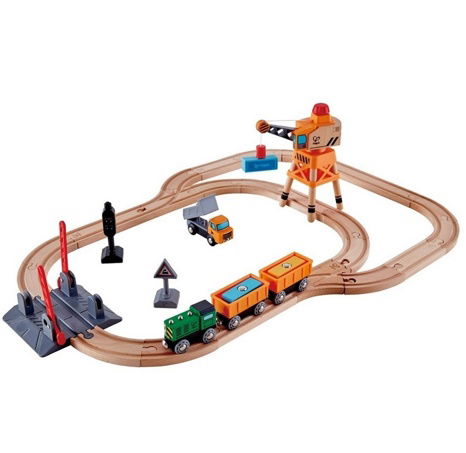 Dřevěná vláčkodráha s magnetickým jeřábem od výrobce Hape.