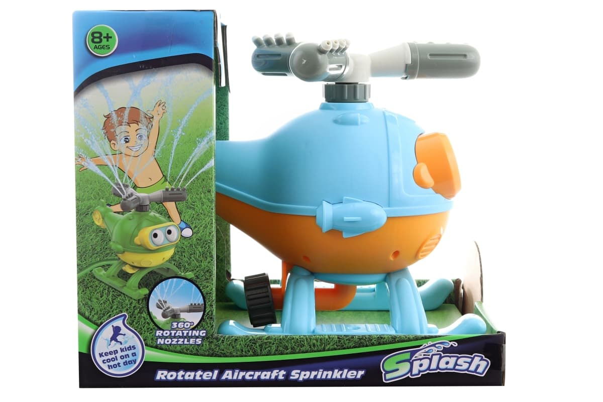 Vodní rozstřikovací helikoptéra. Napojení přímo na zahradní hadici. Materiál plast. Vrtule se při rozstřikování točí. Baleno v otevřené krabici. Rozměry balení...