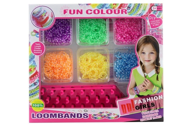 Kreativní sada - výroba náramků z malých gumiček. balení obsahuje stav jako pomůcku. Balebo v krabici. Rozměry balení 26x24x4,5 cm. Věk 3+...