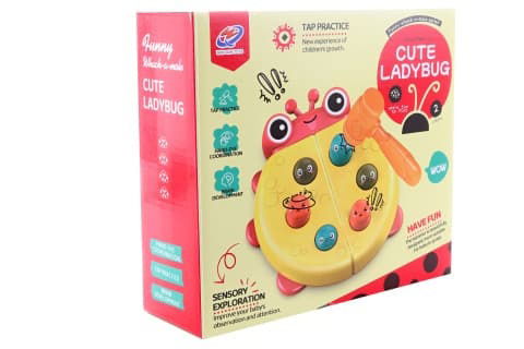 Zatloukačka beruška. Materiál plast. Po zatlučená jedné hlavičky vykoukne hlavička jiná. Baleno v krabici. Rozměry balení 21,5x19,5x6,5 cm. Věk 3+...