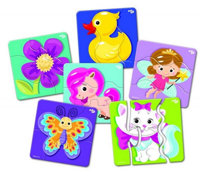 Sada obsahuje 6 obrázků a 18 dílků. Jedná se o první puzzle pro batolata. Barevné obrázky a speciální klikaté stříhání dodávají hře více zábavy. Tato hračka ro...